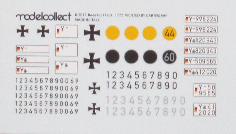 Die mehrfarbigen Bemalungshinweise wurden in Kooperation mit mig erstellt. Daher bezieht man sich auch nur auf deren Farbsortiment. Leider gibt es keinerlei weitergehende Informationen zum Vorbild oder den benutzten Nummernschildern. Der beiden Decalbögen sind zwar tadellos auf hellblauem Trägerpapier gedruckt aber was nützen hier Kennungen für Bundeswehrfahrzeuge. Wo die paar nützlichen Decals angebracht werden müsse, das ist nur durch Suche oder Vorbildmaterial herauszufinden.