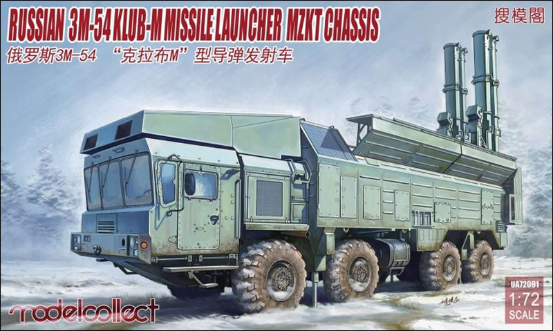 Bausatz: Modelcollect hat in seiner Reihe sowjetischer bzw. russischer Raketentechnik auch eine fahrzeugbasierte Export-Variante des Kalibr-Systems herausgebracht. Dieser Bausatz liefert die Variante, die auf einen MZKT-7930 verlastet ist. Fahrzeuge auf dieser Basis wurden mehrfach auf Verkaufsausstellungen gezeigt.