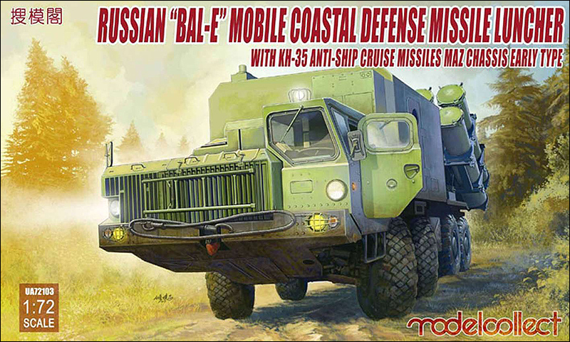 Bausatz: Modelcollect hat in seiner Reihe sowjetischer bzw. russischer Raketentechnik auch zwei Bausätze der Exportversion der 3K60 BAL herausgebracht. Dieser Bausatz zeigt die sich auf dem MAZ 543-Chassis befindliche frühe Version (Prototypen ??) der BAL-E. Modellcollect kann sich hier bei seinem eigenen Fundus bedienen, man hat ja ein MAZ 543- und ein MZKT 7930-Chassis da. Bilder der BAL auf MZKT findet man problemlos, ein Bild der BAL auf einem MAZ 543 habe ich noch nicht gefunden, nur die Erwähnung auf einer Website.