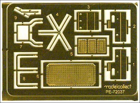 Der Problematik der gut detaillierten Gummiräder ist eine erhöhte Aufmerksamkeit zu schenken; bei anderen Bausätzen wie E-50, E-75 und diversen T-64, T-72 und T-80 hat man die Gummiketten bereits durch Segmentketten aus Plast ersetzt (was ich sehr begrüße), es wäre schön wenn man die Gummiräder durch welche aus Plast ersetzt bzw. als 2. Alternative mit anbietet. Die geätzten Platinen sehen gut aus und enthalten mehr Bauteile, als man laut Bauanleitung verbauen soll. Dabei ist der recht prägnante Schutz des Dachscheinwerfers (PE 72037-4) doch sehr willkommen. Dafür fehlen die markanten Scheinwerferschutzgitter, diese findet man erst auf der Platine 72043 und diese ist erst in den neuen Modellen MAZ 7911 (Moco 72064) und MAZ 7410 (Moco 72048) vorhanden. Vielleicht wird sie ja späteren Auflagen beigelegt. Das wars aber schon mit der Maulerei.