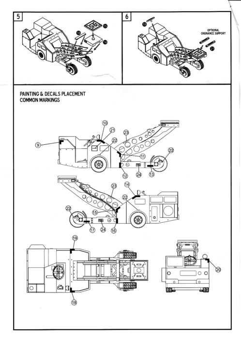 Der Zusammenbau des Munitionsladegeräts wird durch eine dreiblättrige A4-Bauanleitung gut erklärt. So sollten auch Anfänger, die mit Resin noch nicht so große Erfahrung haben, gut mit dem Bau des Modells zurechtkommen. Die Pappschachtel beherbergt außer den 23 Bauteilen auch einen gut gedruckten Decalbogen der den Bau von drei MJ-1B Ladegeräten ermöglicht. Auch Farbangaben sind vorhanden.