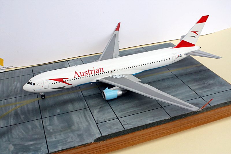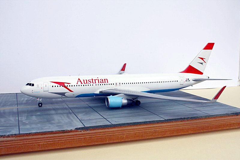 Manchmal entstehen ja Modelle buchstäblich beim Lesen, zu mindestens vor dem inneren Auge. So auch bei mir beim Durchblättern einer Luftfahrtzeitschrift. In dieser befand sich ein Bild und die Nachricht, dass die AUA ihre 767-Flotte mit Winglets versehen will. Ein wenig später fand ich beim Stöbern im Internet die Ankündigung, das Contrails, eine Kleinserienfirma aus den USA, die Winglets für die große Boeing auf den Markt bringt. Nun wurde das Modell schon langsam Wirklichkeit. Die P&W Triebwerke, die die Lauda / Austrian für ihre 767 gewählt hatte, hatte ich auch bereits in Form von BRaZ für ein anderes Projekt im Lager. Ein Gespräch mit Rainer Selisko vom IPMS AT klärte auch das Problem der Decals für mein auserkorenes Vorbild, die OE-L Alpha Echo. Im Gegenzug sollte ich dann für die Modell Panorama(siehe Ausgabe 2010/1) Leser meine Erfahrungen niederschreiben.