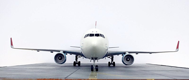 Fazit: Das fertige Modell entschädigt auf jeden Fall für die Mühen während der Entstehung. Richtig modern sieht sie jetzt aus, die 767er mit den markanten Winglets. Ein sehr großes Dankeschön auf jeden Fall an Rainer für die großartige Arbeit für die Decals. Ohne ihn wäre das Projekt nur eines im Kopf geblieben.