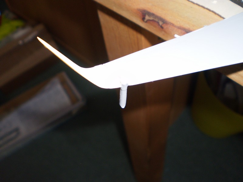 Das Trockenanpassen der "Flügelohren" an die Tragfläche brachte die nächste Überraschung. Der Winglet ist mindestens doppelt so dick wie der Flügel. Ich weiß nicht, ob der formhaltige Guss in korrekter Dicke nicht möglich ist; jedenfalls war hier viel Schleifarbeit von Nöten. Wenigstens ist Resin ein gut schleif- und in-Form-bringbares Material. Hier sollte man auf jeden Fall sehr vorsichtig zu Werke gehen, um den Schaden an den feinen Gravuren des Zvezda Bausatzes in Grenzen zu halten. Irgendwann entstand dann doch ein akzeptables Ergebnis.