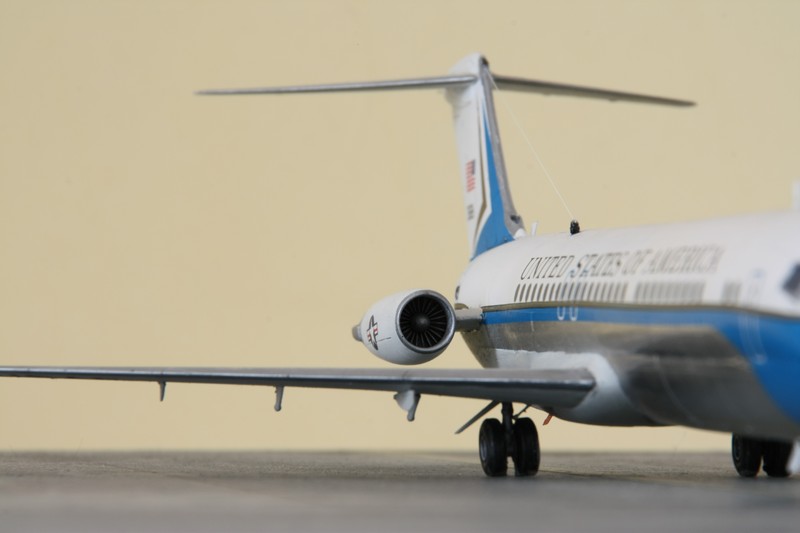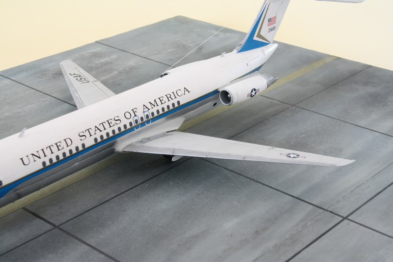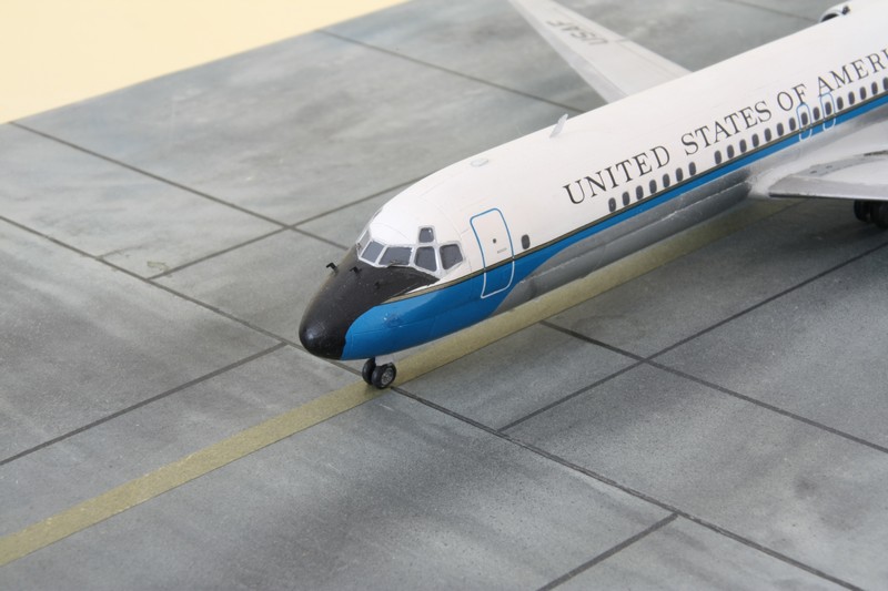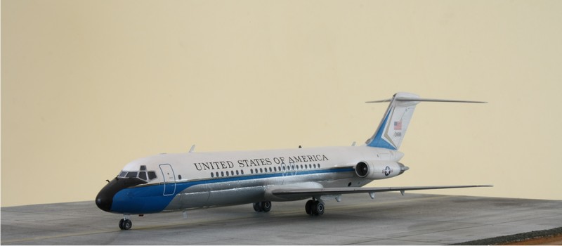 Dieses Modell ist eigentlich schon rund 4-5 Jahre alt, ich habe einfach mal die Möglichkeit genutzt, es gleich mit zu fotografieren, als ich mein „Studio“ für die SR-71 aufgebaut hatte. Das Modell ist der DC-9-30 Bausatz von Flying Fish, für die Bemalung habe ich einen Abziehbilderbogen von Liveries Unlimited benutzt. Ich persönlich finde es recht interessant, mal einen Airliner im militärischen Gewand zu sehen.