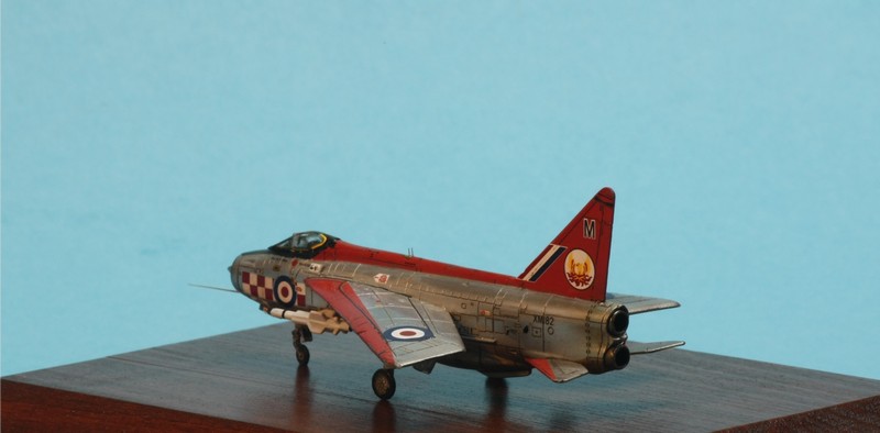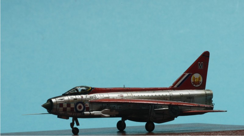 Das Modell soll eine EE Lightning F.1A in den Farben der 56 Sqn alias den "Firebirds" aus der Saison 1963 darstellen. In dieser wirklich sehr farbenfrohen Lackierung flog diese Staffel der RAF mit dem "Vertical Twin" auf Airshows in verschiedenen Ländern. Allerdings nur in diesem Jahr, da man am Ende beschloss, keine Highperformance-Muster mehr zu solchen Zwecken einzusetzen. Einen kleinen Überblick über die Geschichte gibt es hier.