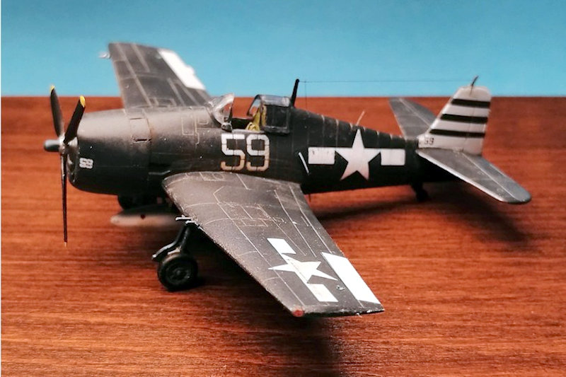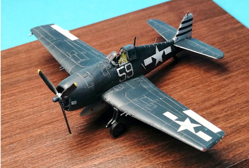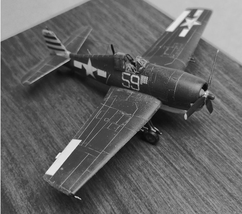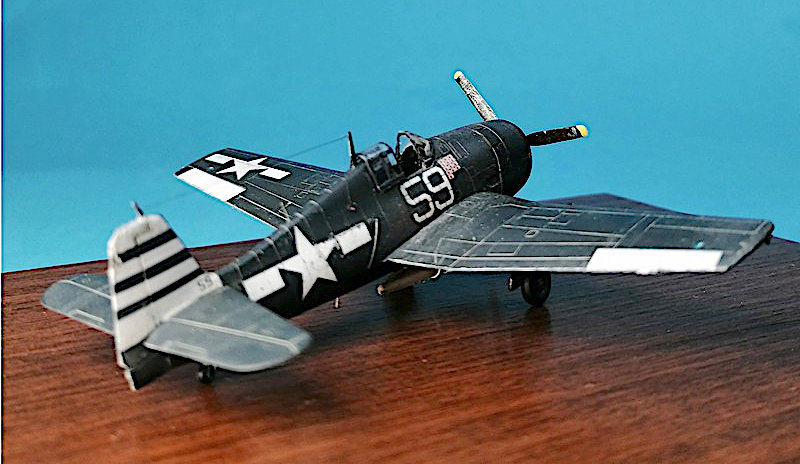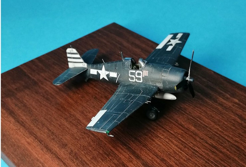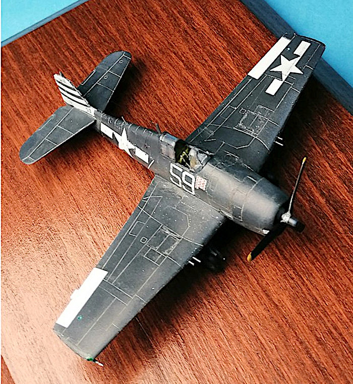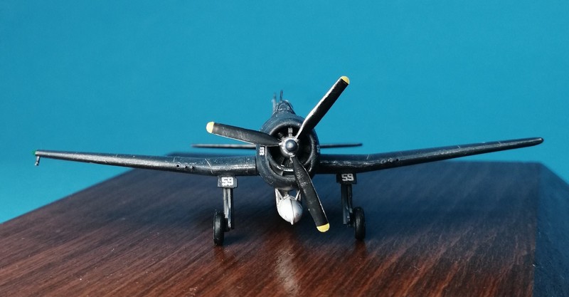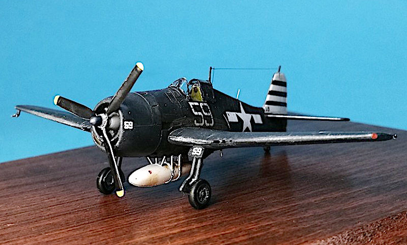 Der Pilot: Daniel Archibald Carmichael Jr. wurde am 24.Oktober 1918 in Washington DC geboren. 1941 schloss er erfolgreich sein Studium als Architekt an der Princeton Universität ab. Während dieser Studienzeit zeigte er sich auch sehr erfolgreich als Sportler in Baseball. In seiner Dienstzeit bei der US Navy flog er zunächst bei der Staffel VF-2, welche an der Bord der USS Hornet CV-12 war. Hier erzielte er 1944 neun Abschüsse. Im Januar 1945 wurde er zur VBF-12 auf der USS Randolph CV-15 versetzt.