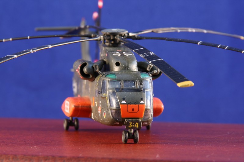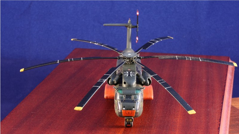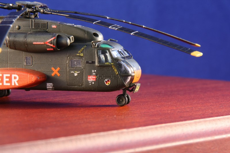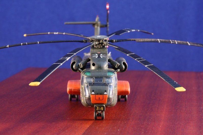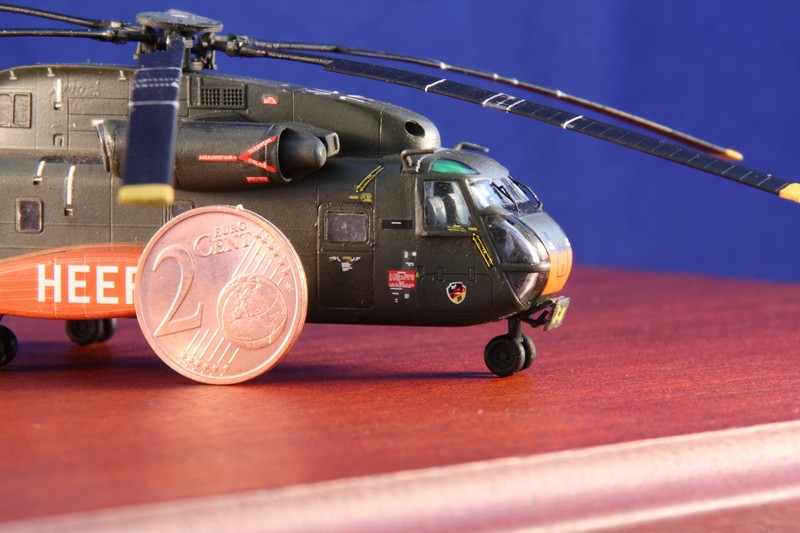 Auf eine Schicht Future wurden die Decals aufgebracht. Da gefühlt mehr als doppelt so viele Abziehbilder wie Bauteile vorhanden sind, ist das Aufbringen durchaus der zeitaufwendigste Teil bei der Entstehung des 144er Hubschraubers. Das Durchhängen der Rotorblätter ist mittels Daumen und Zeigefinger geschehen, sprichwörtlich mit Fingerspitzengefühl! Am Ende erfreue ich mich an dem ersten Drehflügler meiner Sammlung.
