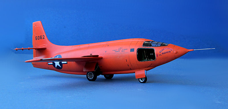 Modell: Gerade rechtzeitig zum 70. Jahrestag des ersten Mach 1 Fluges hat Eduard seine Bell X-1 wieder aufgelegt. Der Bausatz von Eduard hat nun schon zwei Jahrzehnte auf dem Buckel und das merkt man auch. In kaum einem Punkt kann er noch mit den aktuellen Kits von Eduard und Co. mithalten. Einzig die neuen Räder (Resin) und farbigen Fotoätzteile sind ein Lichtblick. Besonders schwierig ist es, Höhenleitwerk und Fahrwerk so anzubauen, dass am Ende alles gerade wirkt. Hier habe ich versagt, doch dazu später mehr.