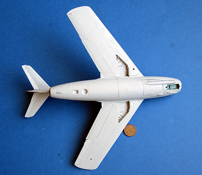 Nun wurden Bug und Heck des Flugzeugs vereint. Natürlich passte auch hier nicht alles optimal, aber die Probleme konnten auf die Unterseite beschränkt werden, so dass oben ein halbwegs brauchbarer Übergang entstand. Da ich zwischendurch einige Unterbrechungen hatte, konnte ich noch einige Zubehörteile kaufen: Räder von Royal Resin sowie Kanonenrohre, Pitot und Antennensockel von Master. Gerade letzteres ist sehr zu empfehlen und verbessert den Gesamteindruck enorm.