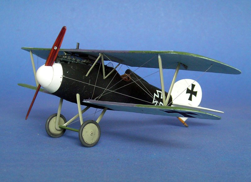 Kürzlich habe ich die nagelneue OEFFAG D.III Serie 253 von Eduard gebaut und dieses Modell war wirklich ein Vergnügen (der Baubericht folgt, sobald das Heft erschienen ist), also habe ich mir den alten Bausatz wieder vorgenommen und auch binnen einer Woche komplettiert. Anstelle der zu kleinen Bausatzräder habe ich zunächst einmal die Teile aus der Revell-Edition ersetzt. (diese werde ich später durch überzählige, angepasste Teile eines Albatros D.II Bausatzes ersetzen --- oder doch noch Kopien erstellen). Die Verspannung habe ich mit rauchfarbenem, unsichtbarem Nähgarn ausgeführt.
