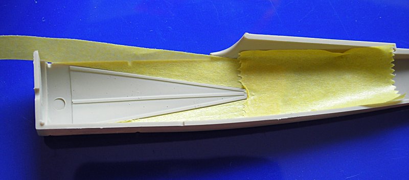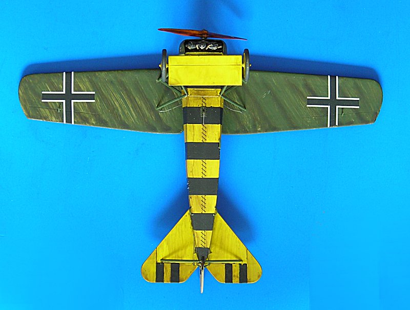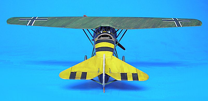 Nun kam was kommen musste, ich hatte nämlich noch etwas übersehen. Flugzeuge der MFJ II waren mit zwei schwarzen Streifen auf dem Höhenruder gekennzeichnet, was sicher auch bei einer so umfangreich nachbehandelten Maschine wie dieser der Fall gewesen wäre ... diese Ergänzung war dann in ein paar Stunden (mit Trockenzeit und Nachaltern) erledigt.