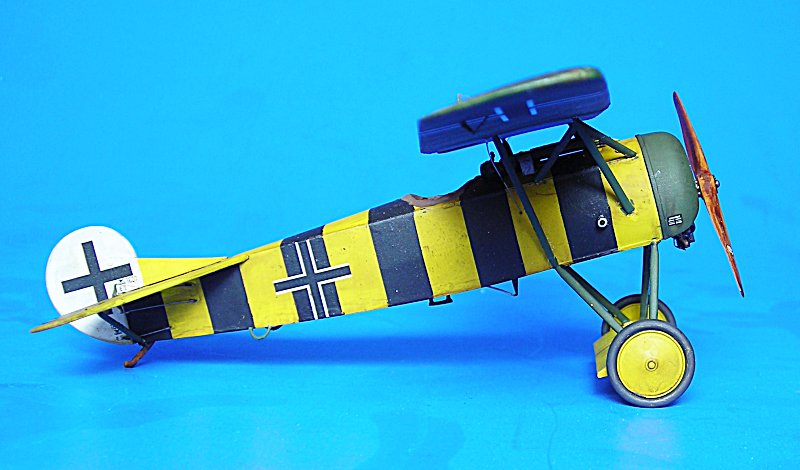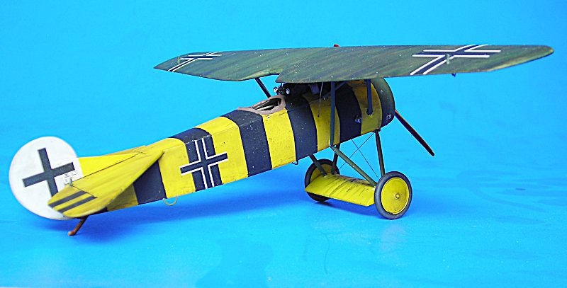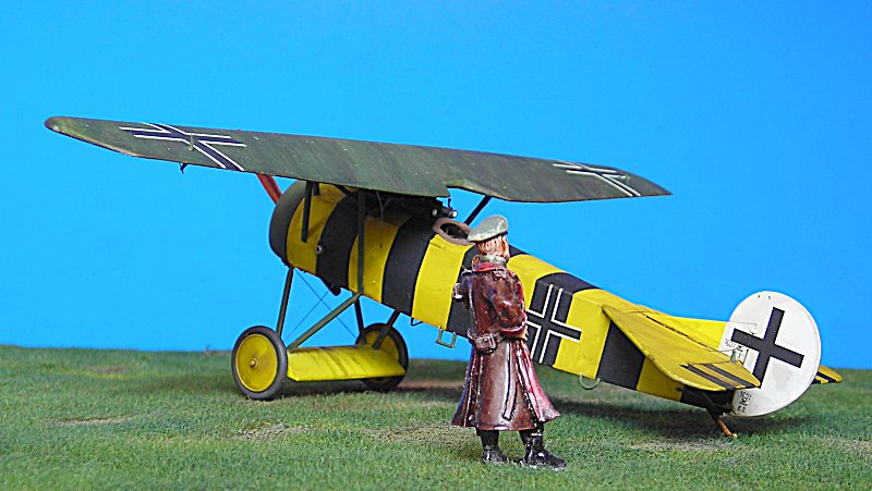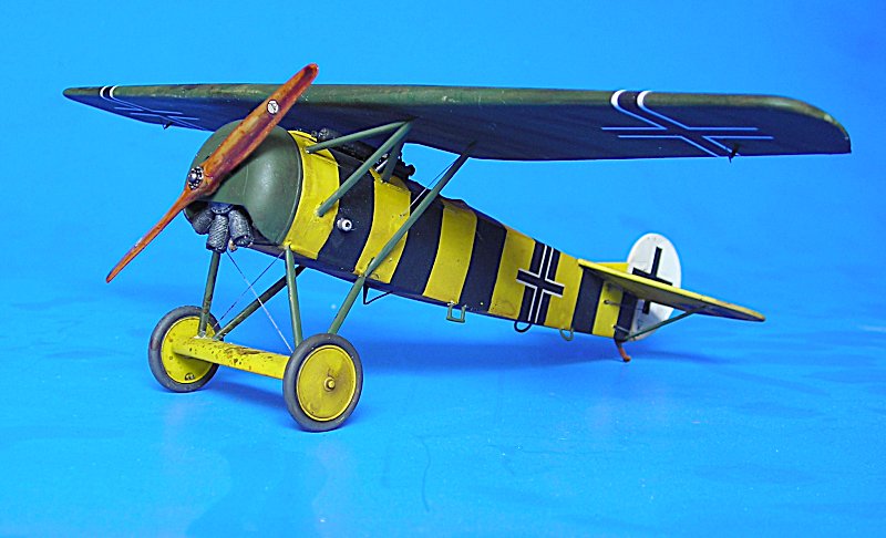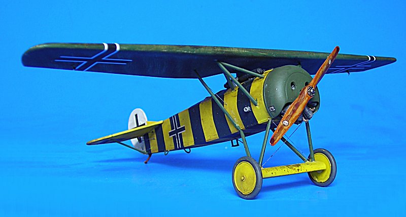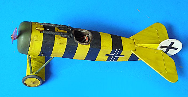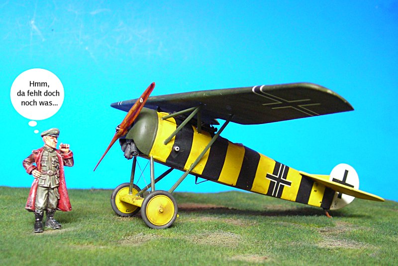 Den Bausatz der Fokker E.V habe ich vor kurzem hier vorgestellt und dabei auch schon einige Worte zur zweifelhaften Bemalungsvariante verloren. Nun, mir gefiel sie sehr gut und daher habe ich den Bausatz auch so gebaut. Die Bezeichnung "Weekend Edition" ist vielleicht etwas irreführend, aber schnellere Modellbauer als ich bekommen das vielleicht hin. Ich habe etwa 14 Tage bei täglich einer halben bis einer Stunde Arbeit am Modell gebraucht. Gleich am Anfang hat mich aber auch die Holzdarstellung im Cockpit etwas aufgehalten .. die Ölfarbe braucht schon ein paar Tage bis sie trocken ist. Aber der Reihe nach.