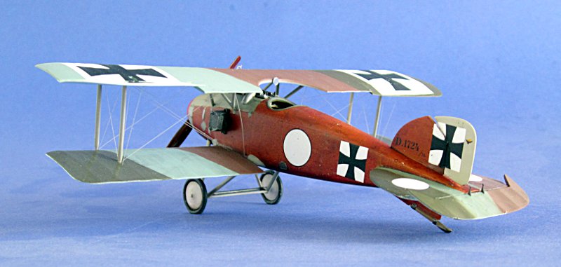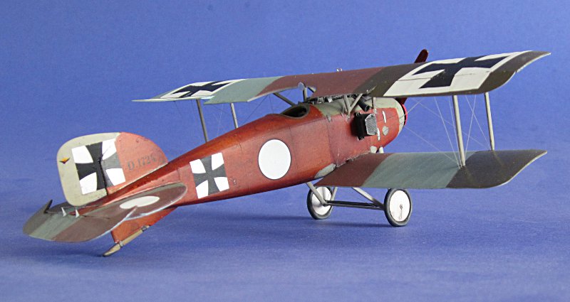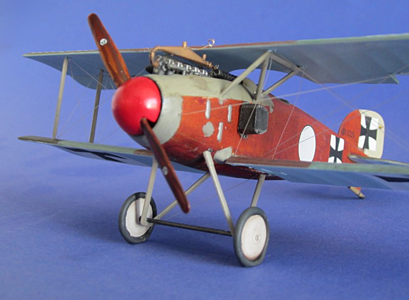 Modell: Wie so oft hatte ich einfach mal wieder Lust auf etwas Anderes. Also landeten alle Wk2 Flugzeuge wieder in ihren Schachteln und es sollte mal wieder ein Drahtverhau werden. Eigentlich hatte ich mir die Albatros D.V von Revell (Eduard) in der Streifenbemalung von Fritz Rumey vorgenommen. Der Bau ging auch zügig voran, leider passen aber die Decals von FCM nicht zu den bekannten Fotos … also nahm auch dieser Bausatz erst mal Platz in der "im Bau"-Vitrine.
