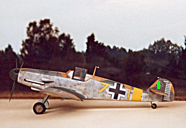 Der Hasegawabausatz wurde ohne Änderung aus dem Kasten gebaut. Das Modell zeigt die Maschine (WNr. 13325) Bauers nach seinem 102. Abschuß, den er am 25. 07.1942 erzielte. Als Einsatzhäfen kommen Nowy Cholan(20.07.-27.7.42) und Frolow(27.07.-10.08.42) in Frage, da Oblt. Bauer bei einer Notlandung am 10.08.42 (nach 106 Luftsiegen) schwer verletzt wurde und für den weiteren Einsatz ausfiel.