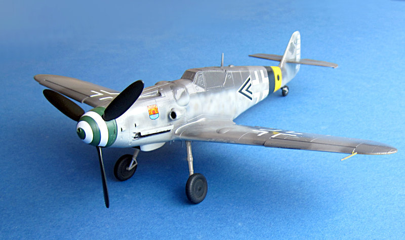 Die Tüpfelung der Seiten habe ich weiter mit RLM76, 75 und 02 bearbeitet und bin soweit ganz zu frieden damit. Also Masken ab und das Ganze ist fertig für den Klarlack. Zuvor habe ich noch die Fahrwerkschächte bemalt.