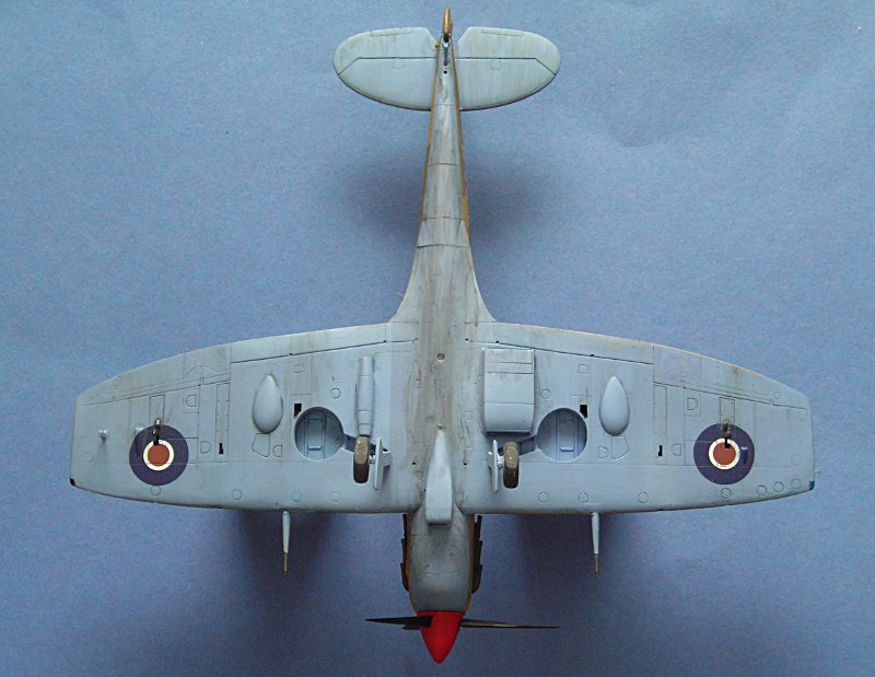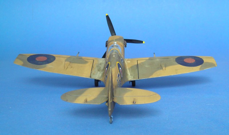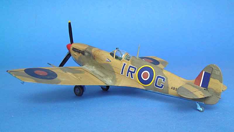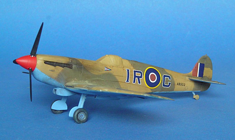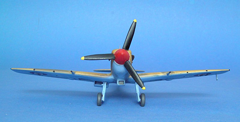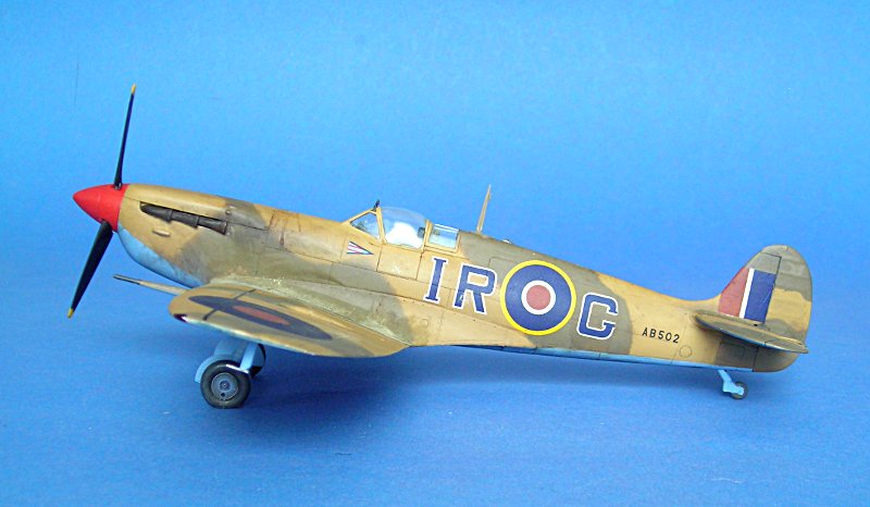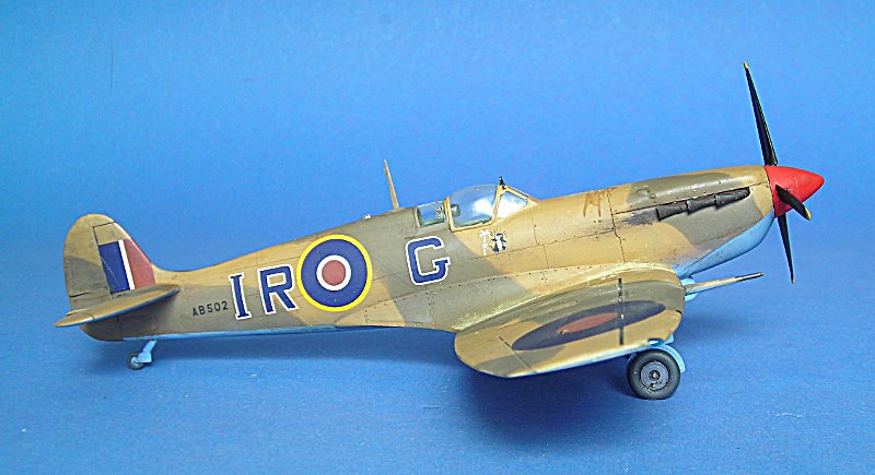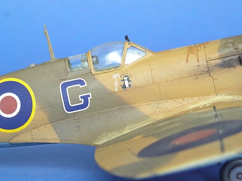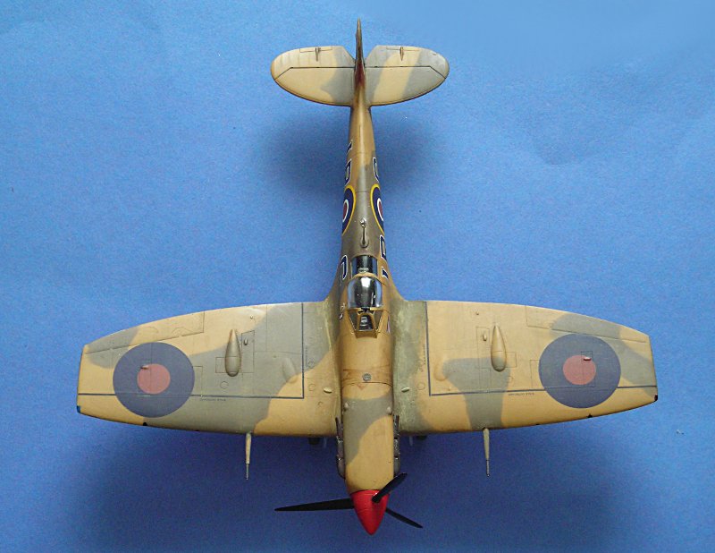 Und schon ging es an die Farbgebung. Auch hier hat Aerospezial wieder tolle Hilfe geleistet und mich mit den passenden Farbtönen versorgt ... ich bezahle meine Sachen dort, aber ich schätze den Service von Volkhard sehr, so dass ich das hier öfter mal erwähnen möchte. Schlecht ist, dass sich die Tommies in Aboukir beim bemalen irgendwie nicht an Standards gehalten zu haben scheinen. Die Linke Seite ist auf dem Foto gut zu erkennen, bei der Rechten muss man eher raten (ich habe ein ebenso bekanntes Farbfoto einer weiteren Aboukir-Filter Spitfire hinzugezogen).