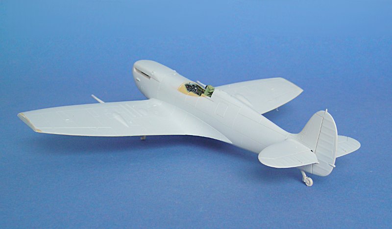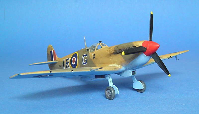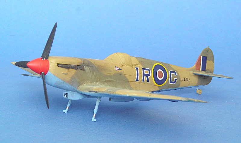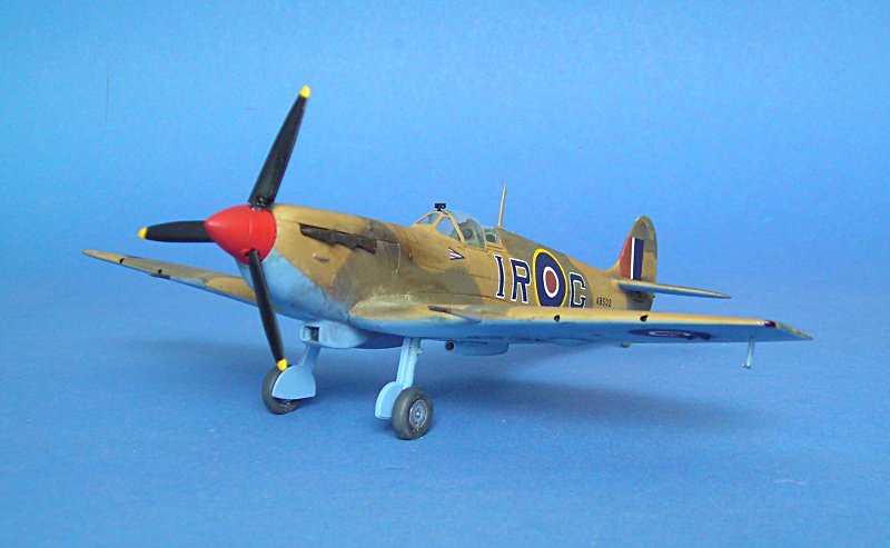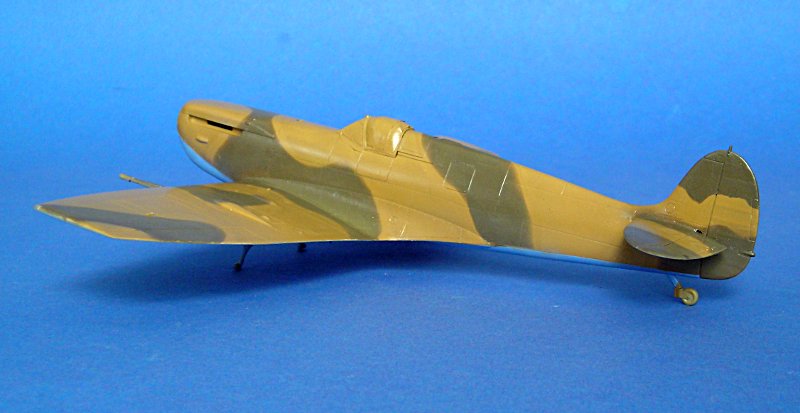 Zunächst hatte ich die gekappten Flügelenden aus dem "Trop"-Bausatz von Tamiya angeklebt, aber mir gefiel der Vergleich mit dem bekannten Foto (Wikimedia commons) nicht. Zunächst habe ich daran 'rumgefeilt, aber mich schließlich doch entschieden einen normalen Spitfire Mk.Vb Bausatz von Tamiya hinzuzukaufen (günstig in einem Sale bei Luckymodel) und die "clipped wings" hieraus zu verwenden --- es folgt später mal eine Maschine von Neville Duke.
