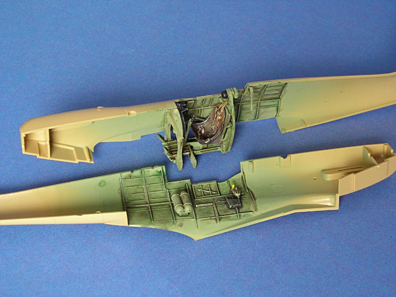 Eigentlich wollte ich es "oob" (out of the box = aus dem Kasten/ohne Zubehör) halten und aus meiner Sicht bin ich da noch sehr dicht dran. Ich habe lediglich einige Teile ersetzt. Los ging es im Cockpit, wo ein Sitz von Ultracast mit Gurten das Innenleben schon deutlich verbesserte. Die Anleitung des Decalsatzes von Victory Productions gab noch ein paar Hinweise und so kamen bei der Bestellung noch Propeller, Auspuffstutzen und Räder hinzu. Der Antennenmast ist von Quickboost und die MGs sind Drehteile von Master aus Polen.