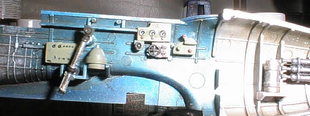 Das Bemalen der Motoren ist ja schon oft beschrieben worden und kann hier vernachlässigt werden, zumal ich auch keine weitergehende Detaillierung der Motoren vornahm. Das Anbringen der blauschwarzen Motorhauben erfolgt erst kurz vor dem abschließenden (Seiden-)Mattlack.