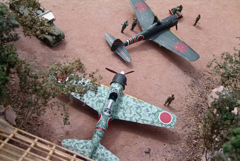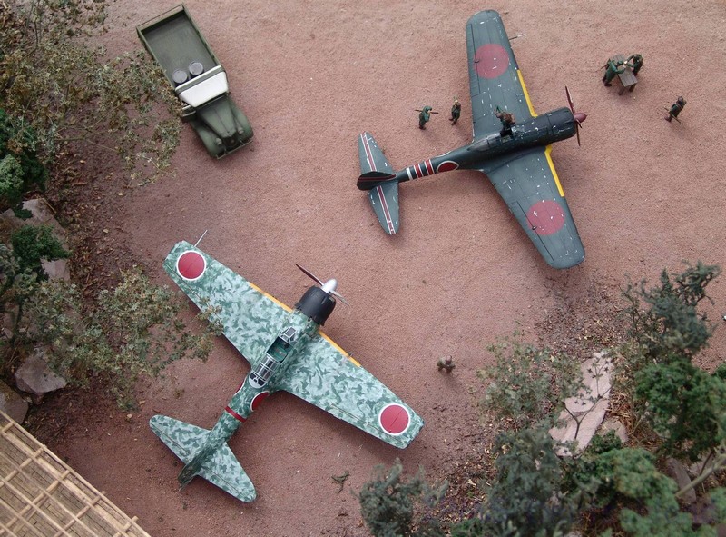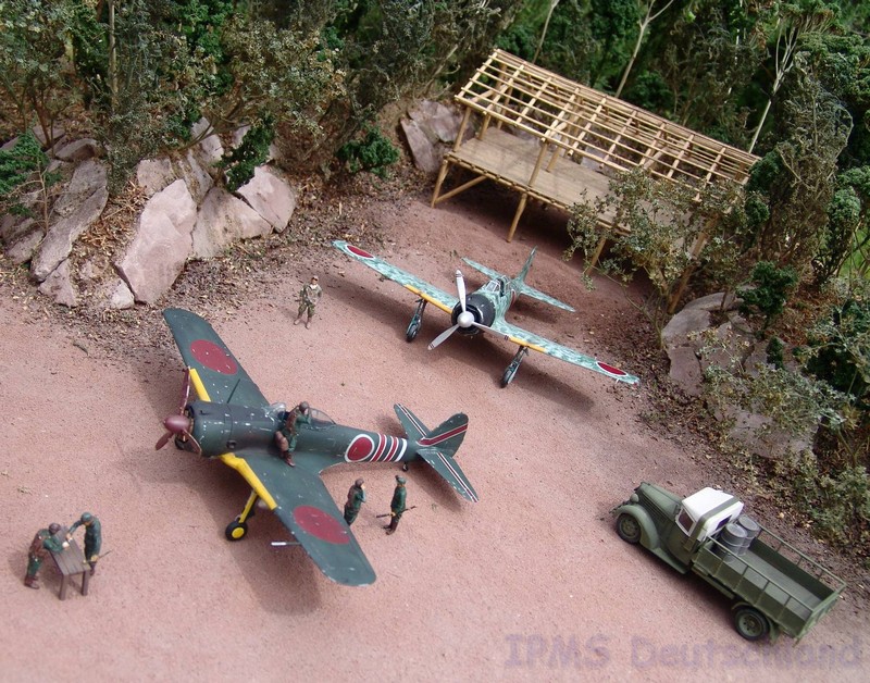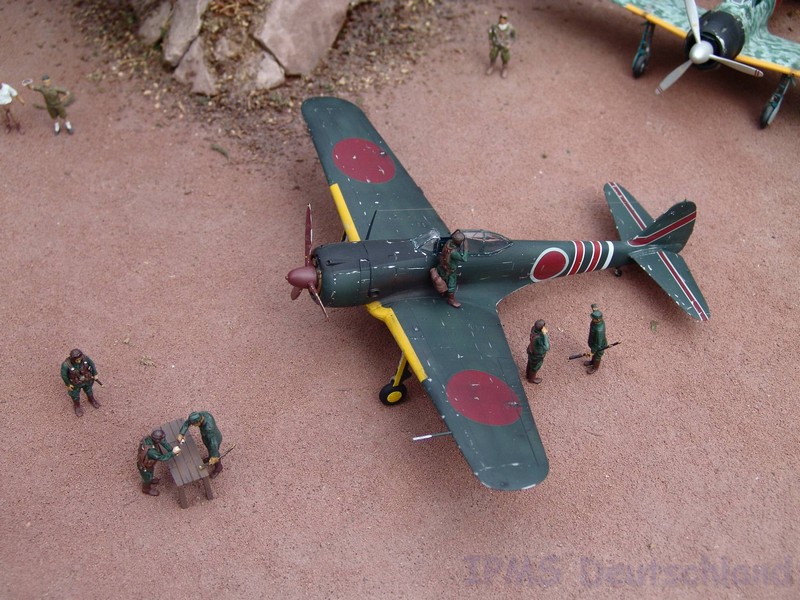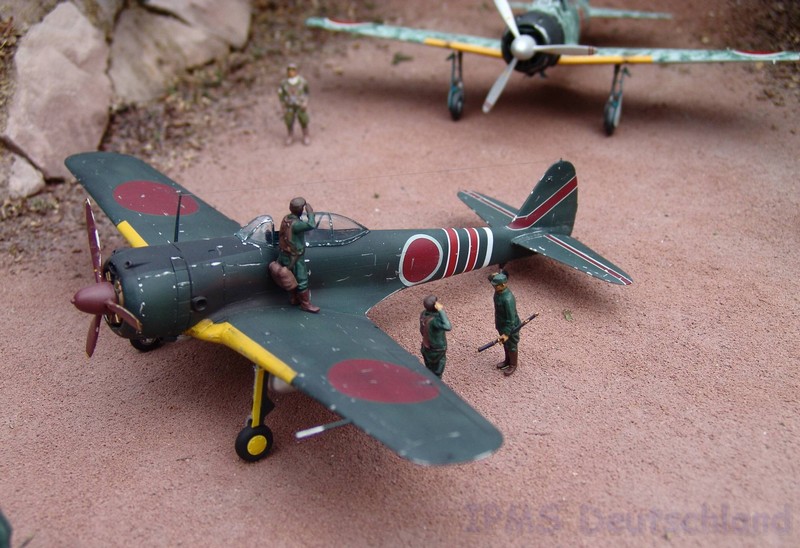 Gestern war ich mal wieder bei Marc Toillié zu Besuch und Marc hat sein schönes Pazifik-Diorama nach draußen getragen, damit wir ein paar Fotos schießen konnten. Außer der Hayabusa stammen alle Modelle von Marc und Geoffroy Toillié. Alle Fotos Marc Toillié. --- (Steffen Arndt August 2010)