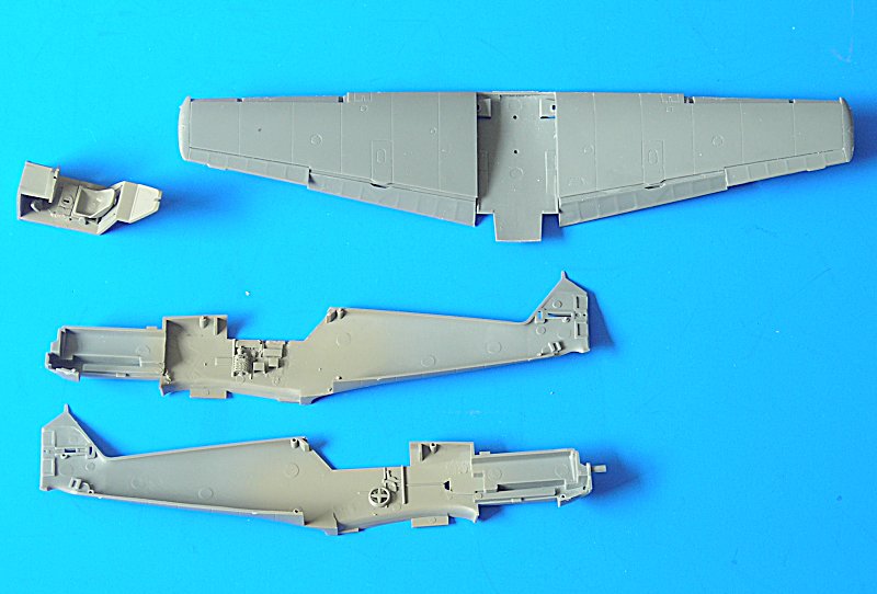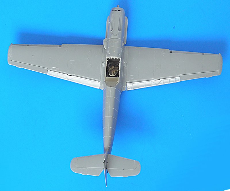 Ansonsten sollte es aus der Kiste gebaut werden und dementsprechend gibt es nicht viel zum Bau zu sagen. Alles passte toll und es gab keine Probleme .. wie man es von Tamiya erwartet. Das Cockpit erhielt einen Anstrich in RLM 02 von Gunze und die Details wurden in schwarz und bunt bemalt. Noch fix die Gurte montiert und schon konnte der Rumpf geschlossen werden.