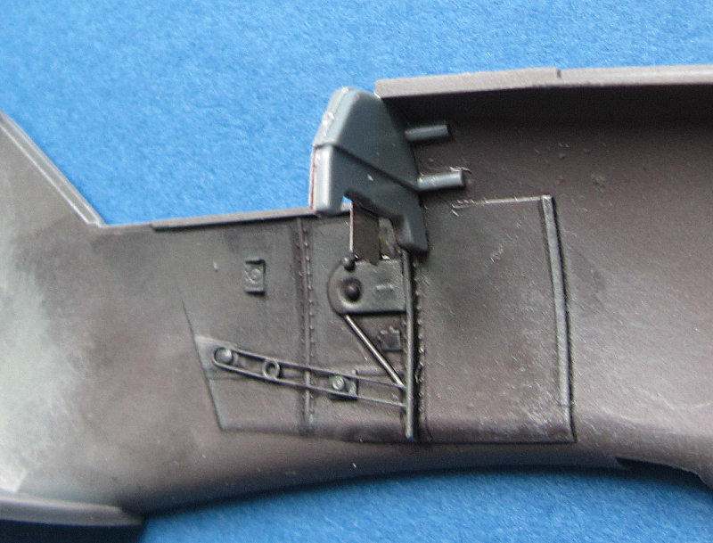 Das Cockpit ist schon in Plaste umfangreich detailliert. Etliche Teile sollen und müssen hier verbaut werden und später sieht man davon wenig. Daher fange ich mal beim Flügel an. Jeder Fahrwerkschacht besteht aus drei teilen und fügt sich problemlos ineinander (wie auch schon bei der Spitfire). Es gab auf der Facebook-Seite von Eduard Kommentare zu den nicht geöffneten Langlöchern. Wie dort von einem Leser angemerkt wurde, ist dies im Vergleich zu Zvezda eine andere Philosphie. Letztendlich ist der Effekt bei entsprechender Bemalung ähnlich und der modulare Aufbau erlaubt hier Zubehörherstellern auch entsprechende Superdetailsets zu entwerfen.