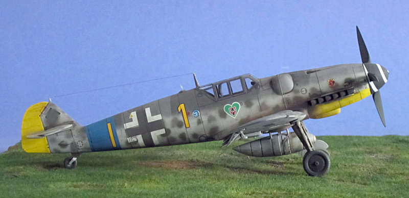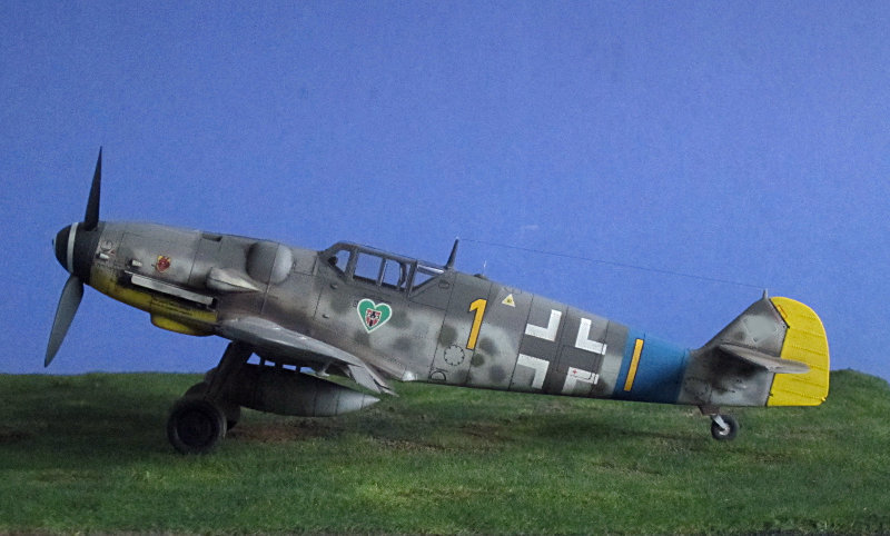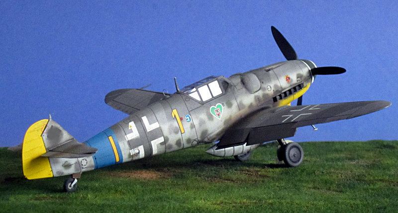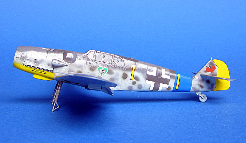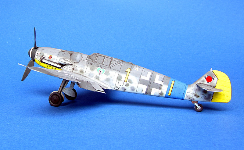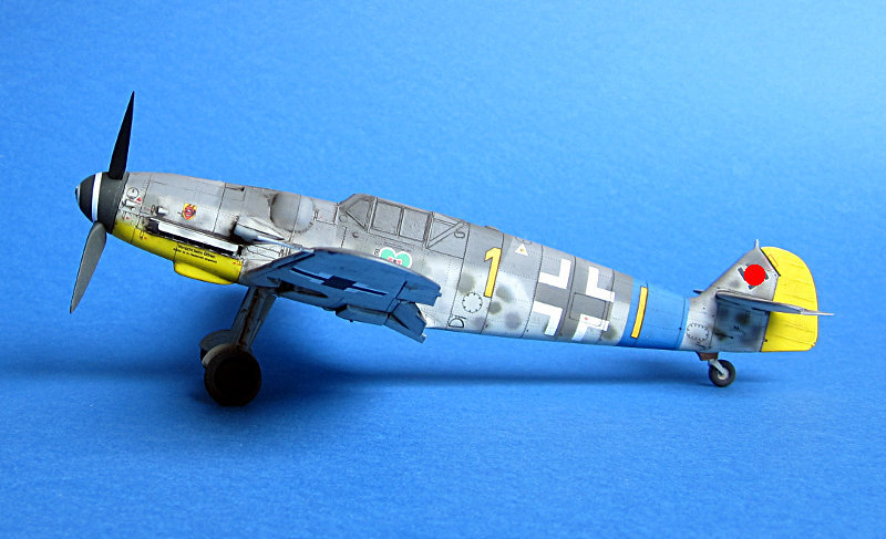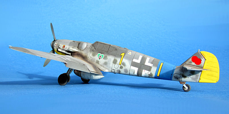 Natürlich habe ich inzwischen fast alle Abschlussarbeiten erledigt. Ich hätte das Update nur gerne zusammen mit dem Review zum Bausatz gepostet, da selbiges stärker auf die Schattenseiten des Eduardprodukts eingeht und man mit gebautem Modell besser eine persönliche Entscheidung für oder gegen den Bausatz finden kann. Sei es wie es sei, heute habe ich mal ein paar Fotos des fertigen Modells geschossen. Es fehlen noch die MG-Rohrmündungen .. hab ich einfach vergessen.