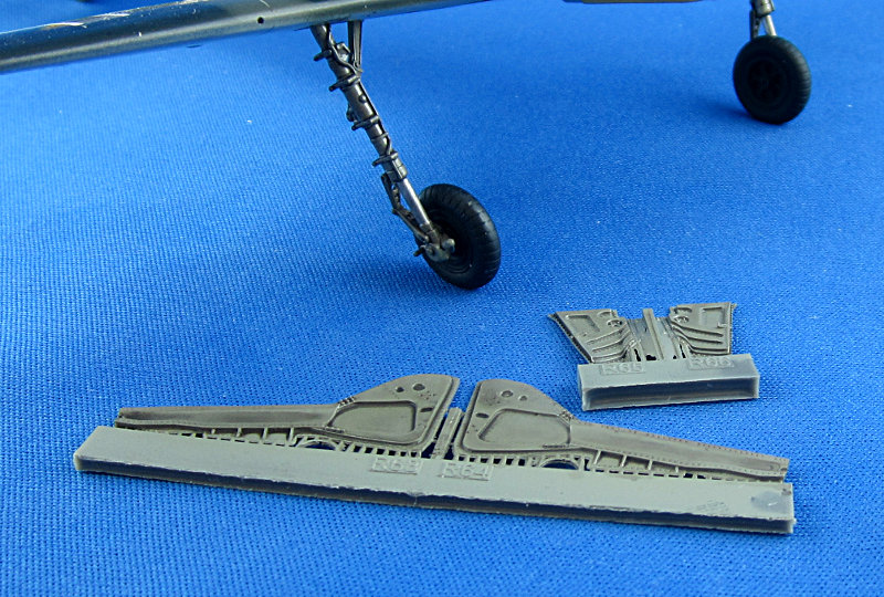 Dann wandte ich mich dem Fahrwerk zu. Die Stoßdämpfer wurden metallen lackiert, die Räder mit einer Feile leicht abgeflacht und passend angeklebt. Die dünnen Resinfahrwerksklappen aus dem Bronze Satz wurden auch in RLM 76 und 02 lackiert. Für das Wash testete ich das noch recht neue Tamiya Dunkelbraun. Ich hatte einen leicht rötlichen Ton erwartet, aber das braun ähnelt sehr stark dem Devlan Mud von Games Workshop, dass ich sehr schätzte, bis die Rezeptur geändert worden war. Dieses Wash verhält sich ähnlich der ursprünglichen Tinte. Ich werde es jedenfalls jetzt öfter verwenden. Verklebt wurde der ganze Spaß mit Sekundenkleber.