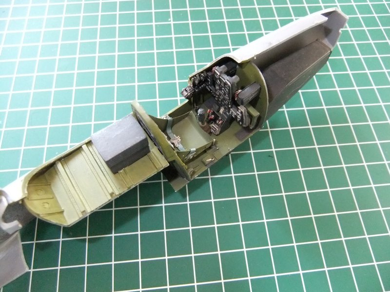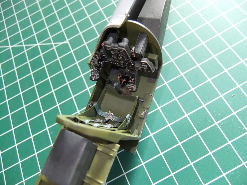 So, nun noch ein wenig nachgravieren und die wichtigste Hürde ist geschafft. Erfreulicherweise ist der Einbau der Fahrwerksschächte wie auch des Cockpits völlig unproblematisch. Das Cockpit wurde bei unserem Modell mit dem hervorragenden Ätzteilesatz von Eduard aufgewertet. Die Bausatzausführung verfügt zwar über alle nötigen Teile, doch sind diese etwas grob dargestellt und die beiden Türen sind leider völlig detaillos.