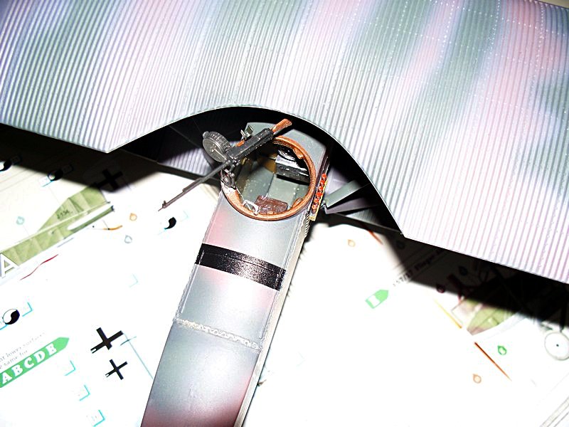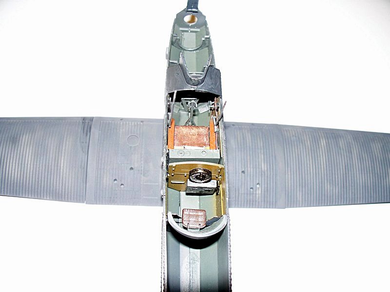 Begonnen wird der Zusammenbau mit dem Cockpit. Dieses ist, dem Original entsprechend, spartanisch eingerichtet und wird von dem großen Sitz des Piloten dominiert, welcher auch als Treibstofftank verwendet wurde.Also, ein wahrer Feuerstuhl. Wichtig für die weitere Passung des Rumpfes ist das präzise Einkleben der Spannten und eines wird schnell klar: Die Zeichnungen in der Anleitung sollten immer wieder überprüft werden, so das kleine Teile wie z.B. die Ruderpedale nicht übersehen werden. Am Sitz bitte erst die Beckengurte und danach die Armlehnen ankleben. Zur Farbgestaltung ist der Bauanleitung ebenfalls in jedem Schritt zu folgen.