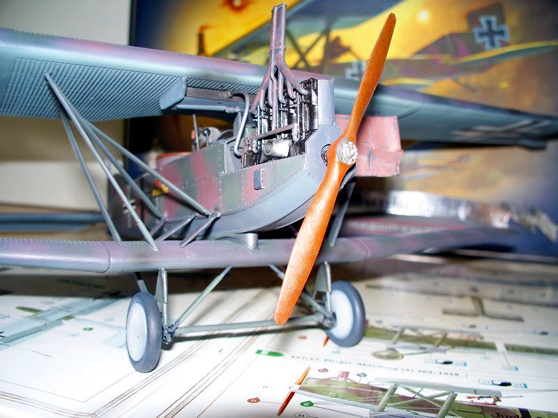 Ein Novum ist auch die farbige Bauanleitung, welche eine umfangreiche Historie in Form von vielen Schwarz-Weiß Fotos von zeitgenössischen Vorbildern, nebst farbigen Restaurationsbildern aus einem neuseeländischen Museum und dem Berliner Museum für Verkehr und Technik beinhaltet. Eine kleine Ätzteileplatine zur Detaillierung des Cockpits und ein riesiger Decalbogen zur Gestaltung von einer Maschine aus vier Bausatzvarianten, für die auch unterschiedliche Austauschteile vorhanden sind, vervollständigen den Bausatzinhalt.