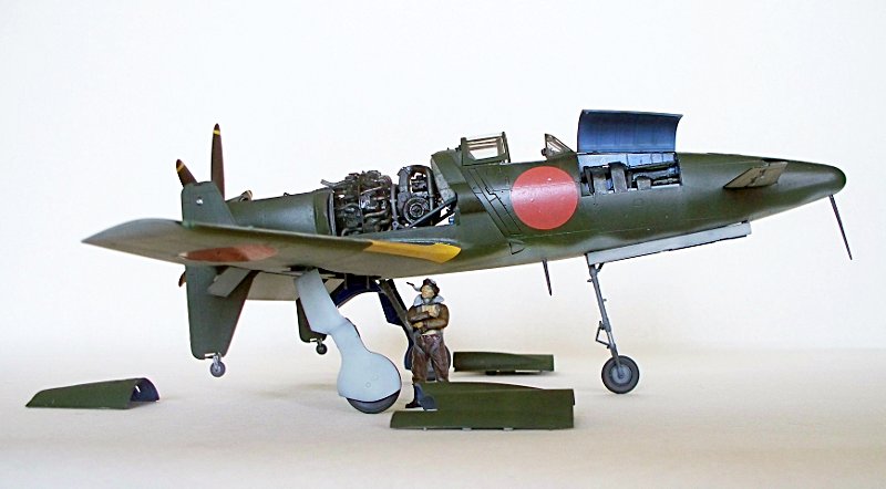 Der hervorragende Figurensatz von MB „Famos Pilots of WWII. liefert auch noch einen japanischen Piloten aus dieser Epoche, welcher die enorme Höhe der Shinden verdeutlicht.