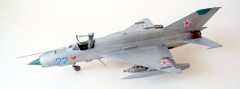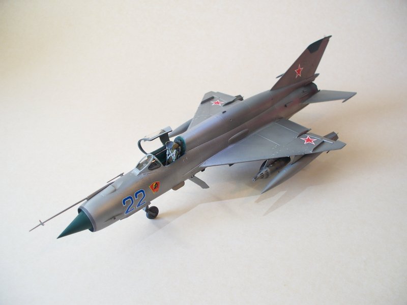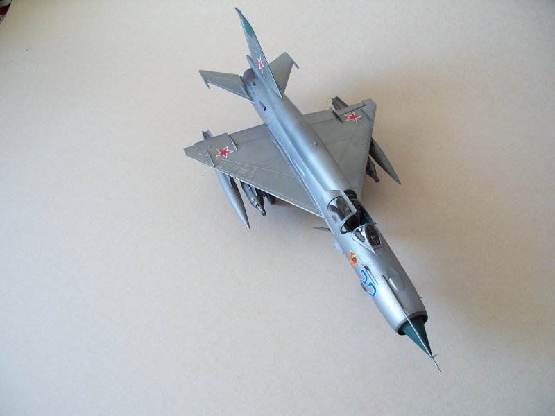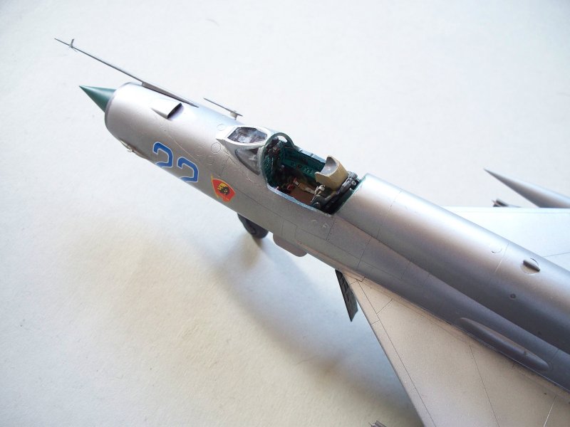 Nun ist sie fertig, die kleine Mig 21 und der Bausatz hat mich wirklich in jeder Phase seiner Fertigung begeistert. Zwar sehr komplex aber niemals nervig, weil auch die kleinsten Teile sauber abgespritzt sind. Noch vor einigen Jahren ging die Beschaffung von Teilen aus Fotogeätzten Messingmaterial für eine Superdetaillierung richtig ins Geld. Bei Eduard ist es inzwischen fast schon Standard, die Bausätze von Grund auf mit diesen Materialien zu versehen. Und das zu moderaten Preisen. Hervorragend!!!