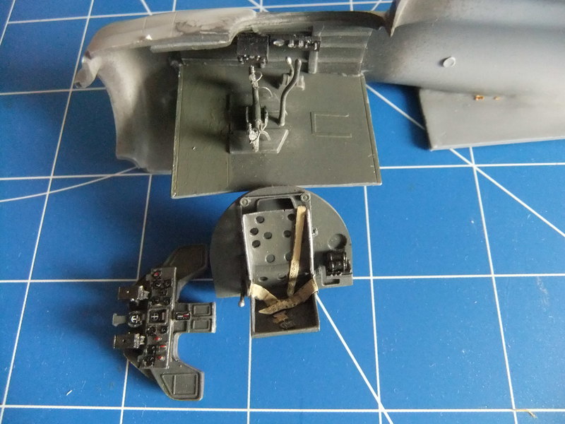 Vervollständigt wird der Sitz mit dem Gurtzeug, welches sich auf der ebenfalls beiliegenden Fotoatzplatine befindet. Auf dieser ist auch das Zündkabel für den Kotabuki-Motor befestigt. Außerdem befinden sich Teile für die Ruderanlenkungen, die Stabilisatoren der beiden Bomben und Befestigungsösen zur Sicherung bei hoher See, die später an dem Fahrwerk und unter den Tragflächen angebracht werden, an der Platine.