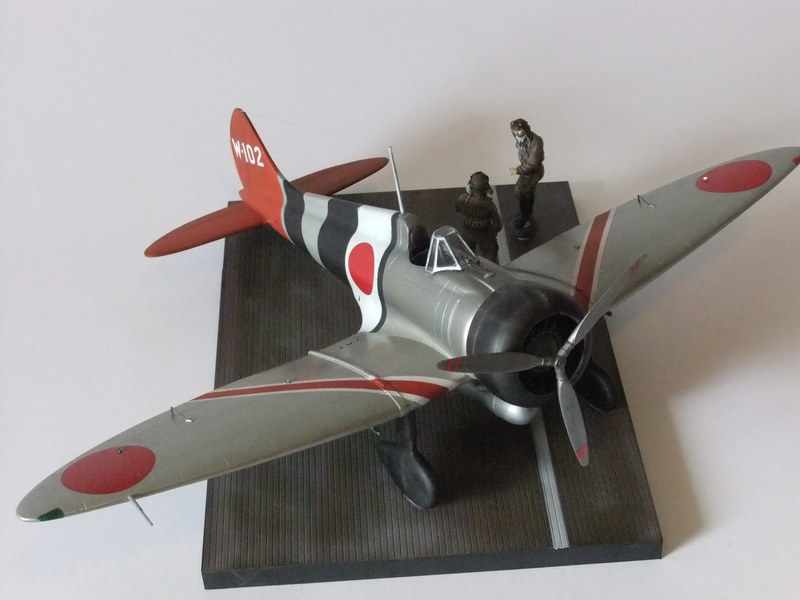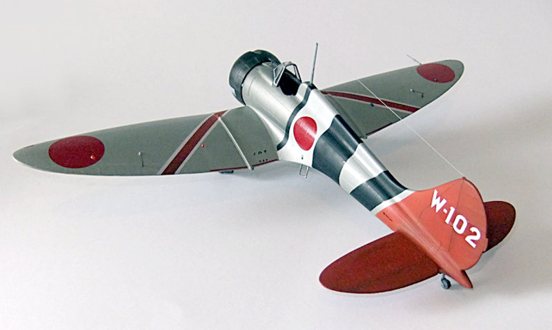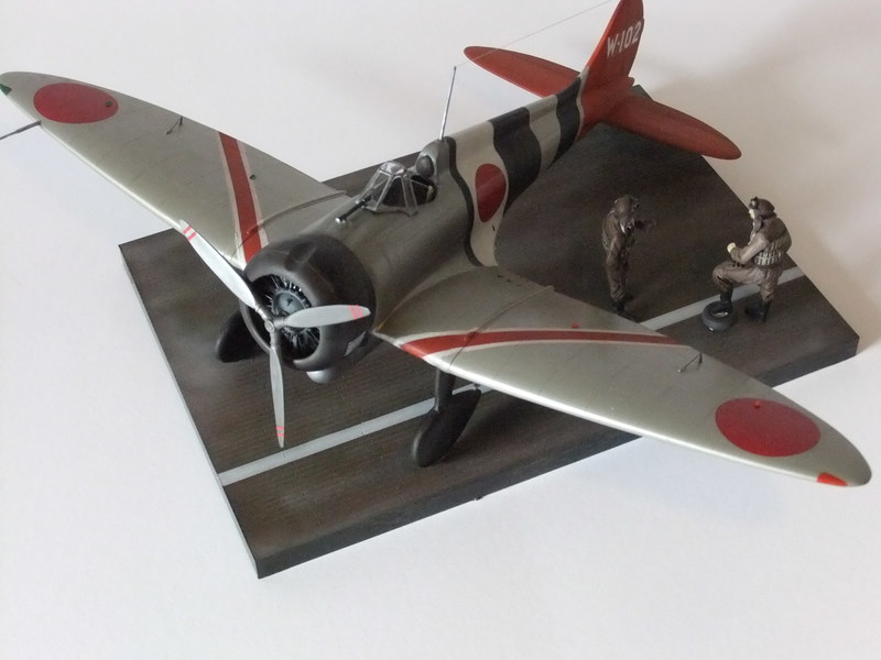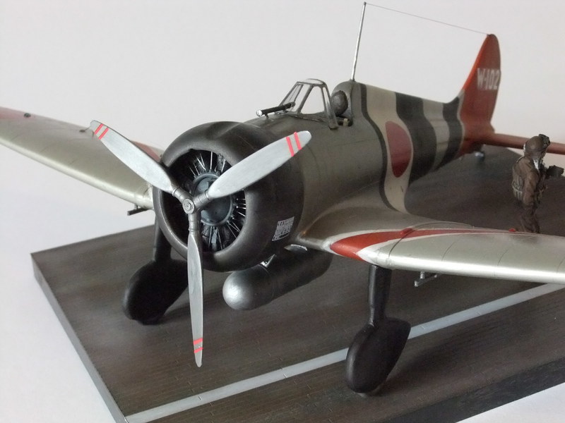 Japanische Marinejäger flogen in dieser Periode meistens in Naturaluminium mit zum Teil farbenprächtigen Anstrichen, welche die Zugehörigkeit zur jeweiligen Trägerstaffel erkennen ließ. Außerdem bekamen die Flugzeuge eine Schutzfirnis mit der Bezeichnung: "Ame-Iro" die den Maschinen einen bernsteinfarbenen Ton gab. Das gebaute Modell war 1939 auf dem Flugzeugträger "Soryu" stationiert und wurde von dem Steuermannsmaat Matsuo Hagiri geflogen. Damals eine recht bekannte Persönlichkeit, auch "der Japaner mit dem Schnurrbart" genannt. Für die Verbandsmarkierungen hat der Hersteller keine Decals vorgesehen. Also ist Abkleben und Berechnung der einzelnen Partien an Rumpf und Flächen nötig, um das vorher mit Titanium Silber (X-32) von Tamiya ,lackierte Flugzeug farblich zu gestalten.