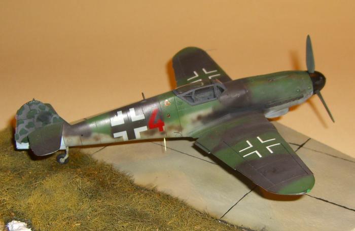 Hasegawas Bf 109 K in 1:48 ist viel gelobt worden. Mir gefiel vom rein optischen Standpunkt die Umsetzung der Motorbeulen nicht so ganz. Daher kamen Reste aus einem Fujimi Kit zum Einbau. Der Arbeitsaufwand ist gering und die Passung perfekt. Insgesamt wirkt das Modell gefälliger. Für die Bemalung gab es kein konkretes Vorbild. Das Modell wurde analog von Vorbildfotos gestaltet.