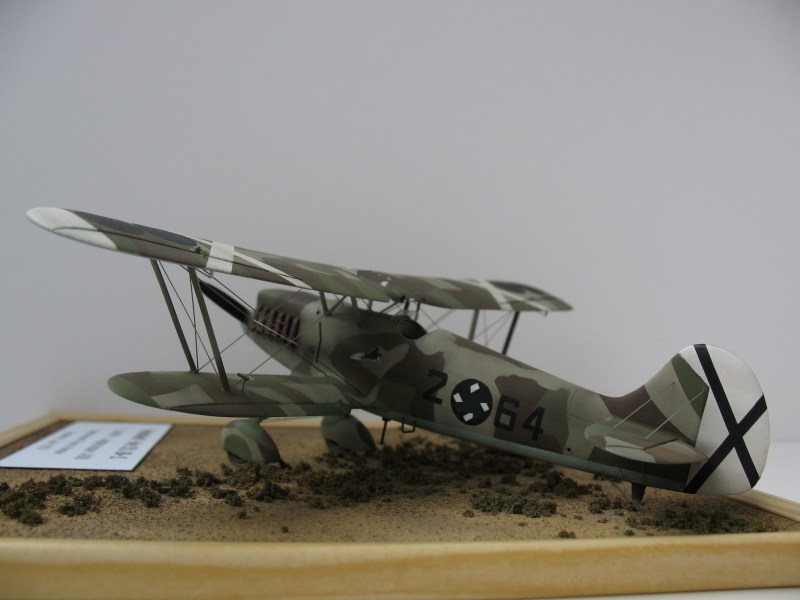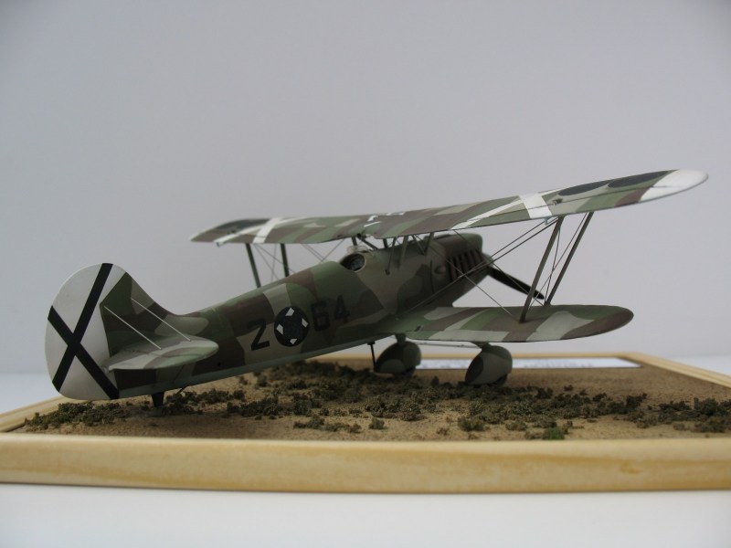 Modell: Mein Modell der He 51 entstand vor Jahren noch aus dem alten HASEGAWA-Kit. Es war daher auch ein größerer Aufwand ein vernünftiges Modell zu erhalten. Nicht das die Passgenauigkeit schlecht war, es war eher die doch recht große Entfernung zum Original die einige Arbeiten erforderlich machte: Der Rumpfbug ist viel zu schmal, und daher auch die Propellerhaube im Durchmesser etwa 2 mm zu klein. Die Spannweite der Tragflächen ist zu gering und die Form der Randbögen sollten auch verändert werden. Das Cockpit war leer und benötigte eine entsprechende Ausrüstung. Auch die charakteristischen Auspuffe sind eine Eigenanfertigung, damals kannte ich noch kein Resin und habe alle 12 Stück mühsam zurechtgefeilt.
