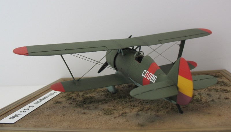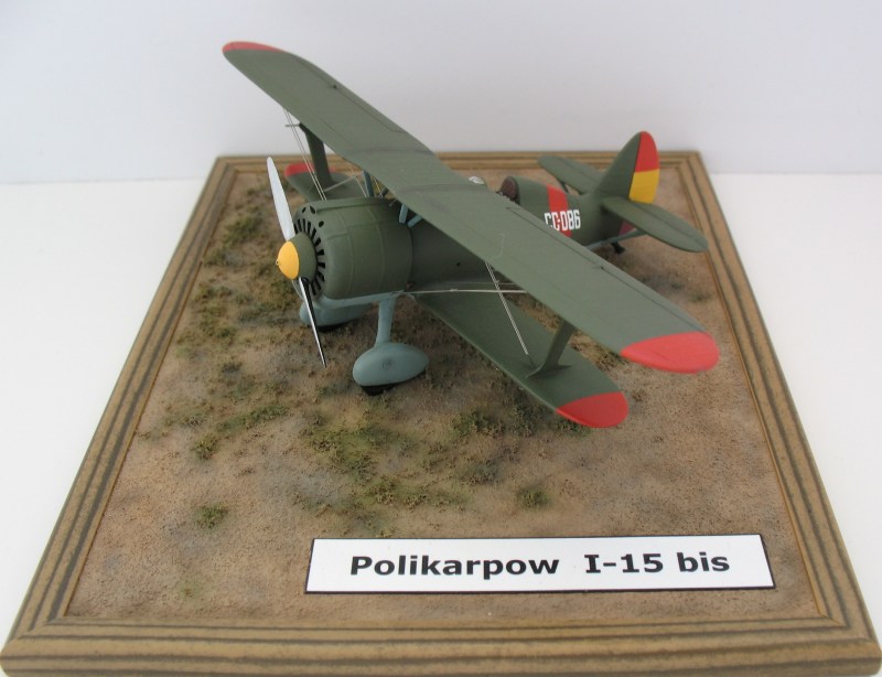 Der Einsatz der I-15 bis im Spanischen Bürgerkrieg währte nicht lange, da die ersten 31 Maschinen (insgesamt 93 waren auf dem Weg ) erst Ende 1938 ankamen und die Maschinen bald wieder nach Frankreich evakuiert wurden. Die Verspannung erfolgte mit Litzen-Draht. Farben verwendete ich von Humbrol.