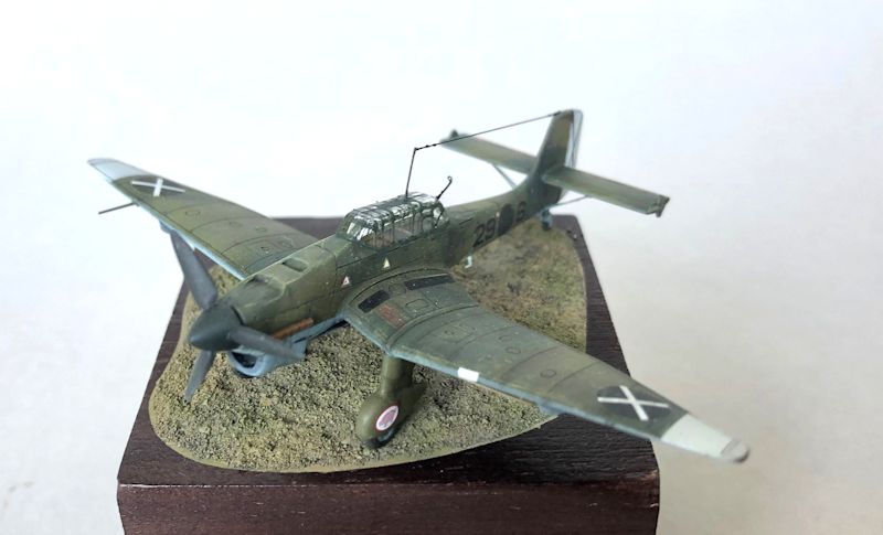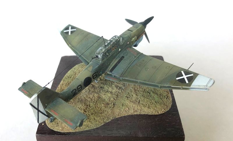 Vorbild: Unwillkürlich verbindet der eine oder andere den Begriff Ju 87 oder auch als Stuka bekannt mit dem ohrenbetäubendem kreischenden Geräusch, dass diese Flugzeuge beim Kampfeinsatz von sich gaben. Bei der Ju 87 handelt es sich um eines der bekanntesten deutschen Kampfflugzeuge das von der Firma Junkers AG als Tiefdecker und Zweisitzer mit auffälligen Knickflügeln entwickelt und produziert wurde. Primär wurde dem Flugzeug die Rolle als Sturzkampfflugzeug zugeordnet, wobei spätere Varianten der D-Serie vorwiegend als Erdkampfflugzeuge zum Einsatz gelangten. Die Ausführung Ju 87B war mit Junkers Jumo 211 Triebwerken ausgestattet, was in einer Leistung von 1000 bis 1500 PS resultierte und damit fast doppelte Leistung erbrachte als das Vorgängermodell. Im zweiten Weltkrieg sah man die Maschine bei der italienischen, bulgarischen und rumänischen Luftwaffe.