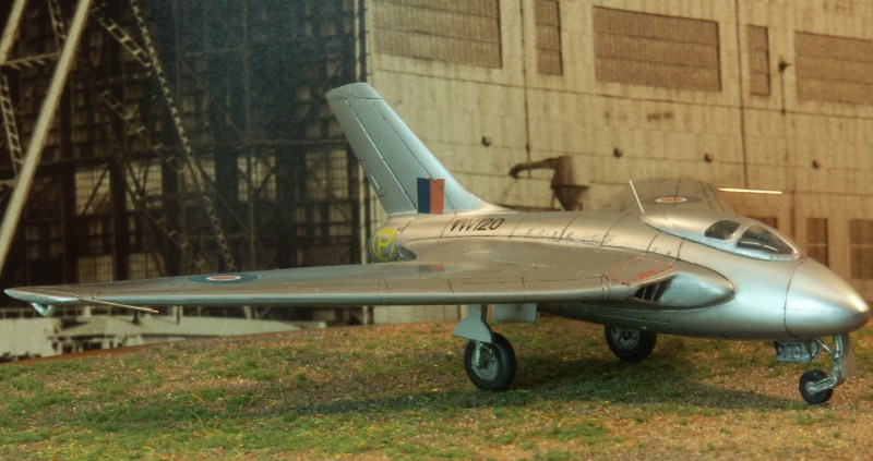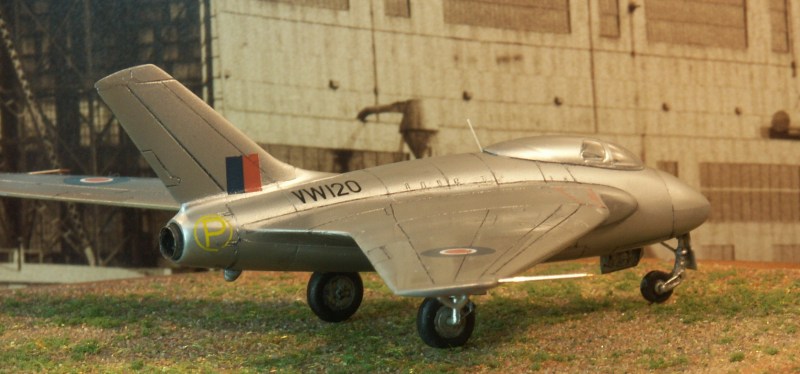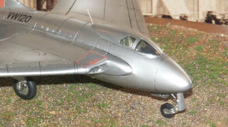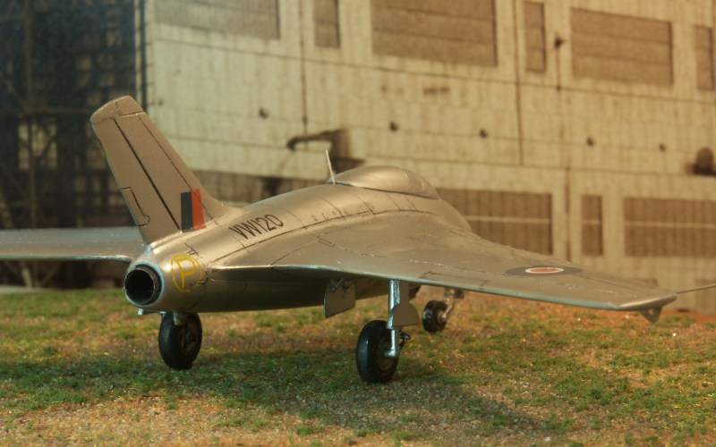 ist eine Kopie des CMR Bausatzes der Vampire, die Haupträder stammen von einer Vampire, Heller "Asbach Uralt", dazu Ätzteile von Eduard für den Einzugsmechanismus der Fahrwerksbeine und Klappen, die dünner geschliffen werden.