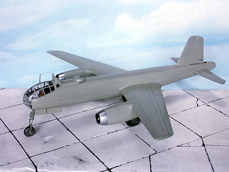 Wer sich für die Jets des dritten Reiches interessiert, wird den Prototyp des ersten Bombers kennen: Junkers hatte die Ju 287 aus allem gebaut, was verfügbar war: Rumpf von He 177, Leitwerk von Ju 288, Bugfahrwerk von einer B-24. Aber das Besondere waren die nach vorn gepfeilten dünnen Flächen und die 4 Strahltriebwerke, je 2 Jumo 004 am Rumpf und unter den Flächen. Das hat wohl auch die russische Führung interessiert, die nicht nur diese Prototypen, sondern die gesamte Entwicklungsmannschaft samt Familie und Einrichtungen nach Russland "einlud" und das Projekt mit Unterstützung durch bis zu 1.000 russische Techniker und Ingenieure fortführte.