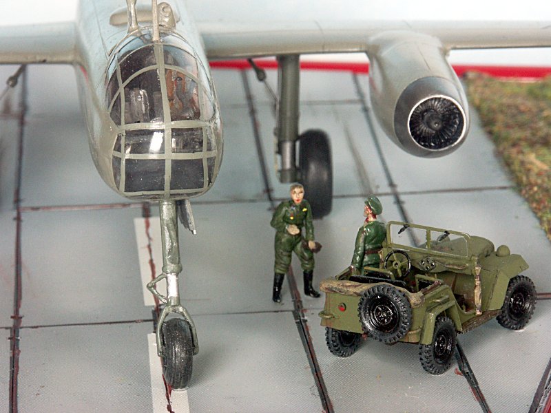 Mit seinen "falsch" gepfeilten Flächen sieht das Modell schon sehr auffällig aus, ein echter Hingucker trotz der traurigen Farbgebung. Und dann noch die turbulente Geschichte mit deutsch-russischem Hintergrund, der mit Figuren von CMK und einem zeitgenössischen GAZ 67 unterstrichen werden kann.