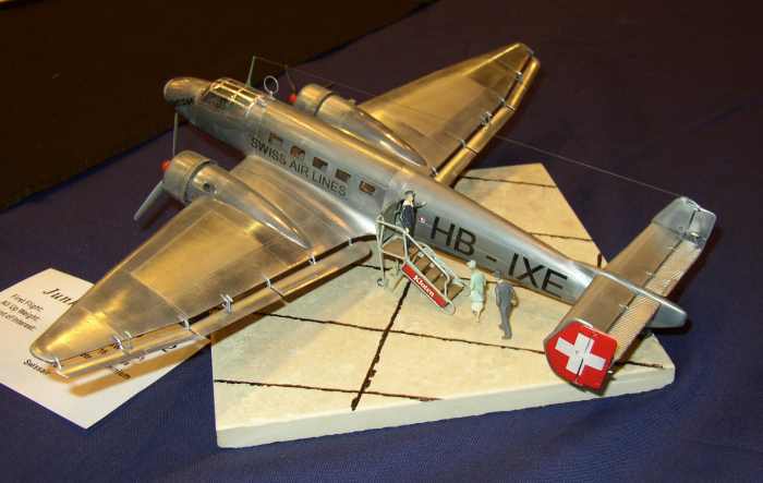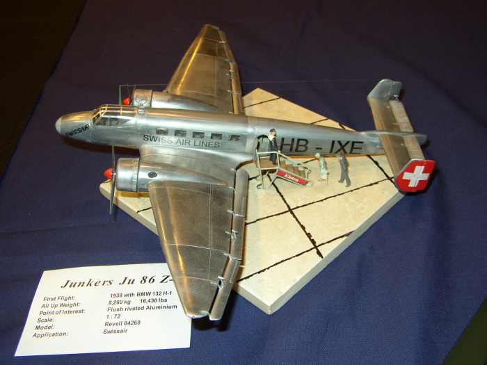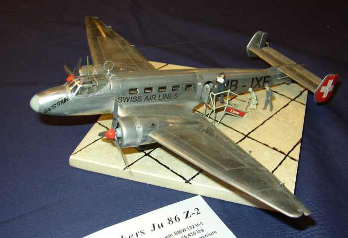 Leider haben sich ein paar Ungenauigkeiten eingeschlichen. Der Revell Bausatz hat nämlich den längeren Rumpf. Die gezeigte Ju der Schweiz gab es so also nicht. Richtig ist die von Italeri mit Schwerölmotor und kurzem Heck korrekt dargestellte, also mit aufgesetztem Höhenleitwerk. Die wurde dann später mal mit dem Sternmotor nachgerüstet und hieß immer noch HB-IXI. Meine heißt aber HB-IXE und ist ein reines Kunstgebilde. Die schweizer Variante war "nötig", damit das Modell auch in Deutschland ohne großflächige Abdeckungen ausgestellt werden kann. Die kolumbianische und die südafrikanische Variante hätte ich gern gebaut, war aber in der Bemalung zu unklar.
