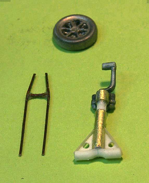 Vom Bugfahrwerk des Bausatzes bleibt nur das ausgebohrte Rad und Halbgabel übrig, der Rest ist aus diversen Resten aufgebaut.