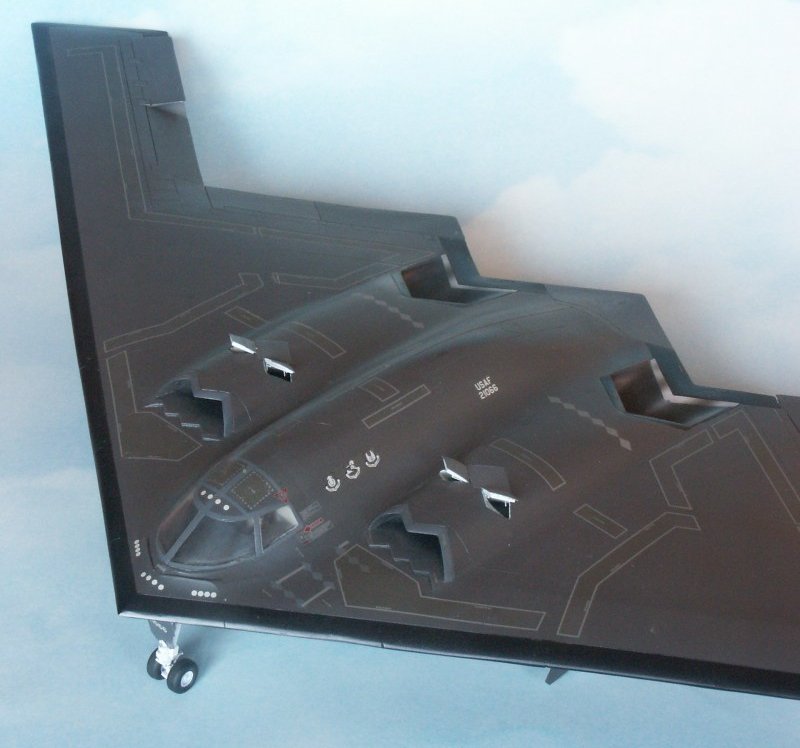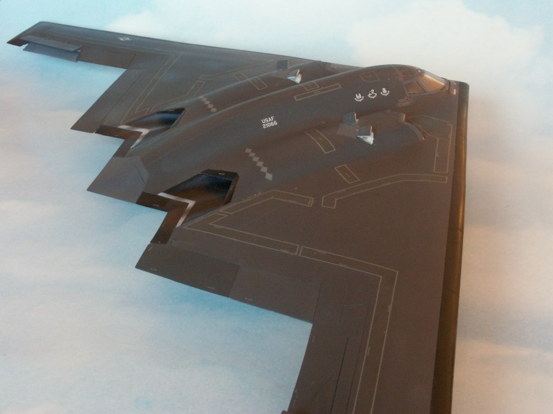 Modellbau gehört ja zu den eher zeitraubenden Hobby's. Da hilft es natürlich unendlich, wenn die bessere Hälfte der Familie sich sogar ein Modell wünscht! Sowas gibt's! Schuld daran war ein gemeinsames Erlebnis bei dem Royal International Air Tattoo in Cottesmore: Nach infernalischem Getöse durch all die Flugvorführungen war der Überflug einer B-2A ein fast lautloser Höhepunkt. Die Typenbezeichnung Spirit bekommt da wirklich Sinn. Und dann die Form, die wirklich an eine gigantische Fledermaus erinnert! Kurz und gut, ein solches Modell sollte es sein.