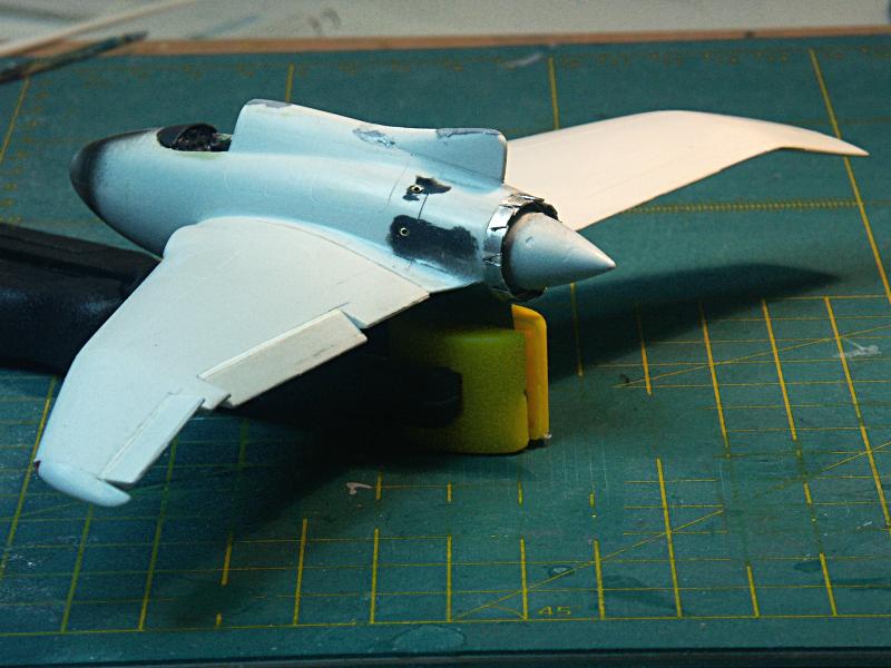 Fazit: Ein richtig guter passgenauer Bausatz mit sehr eigenwilligem Vorschlag fürs Cockpit - und für den ambitionierten Modellbauer bleibt noch Raum zur Kreativität. Geschichtlich eine Sackgasse: Die zukunftsträchtige N9-M bildete die Basis für den Bomber XB-35 bzw. Jetbomber YB-49, was viele als die Grundlage für die B-2 ansehen. Wer dann noch die Vultee XP-54 Swoose Goose oder dieCurtiss XP-55 Ascender daneben stellen kann, der hat eine ziemlich komplette Sammlung der Möglichkeiten, einen Jäger anders zu bauen als es sonst so üblich war.