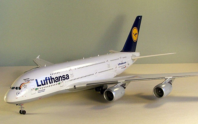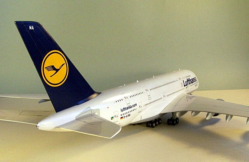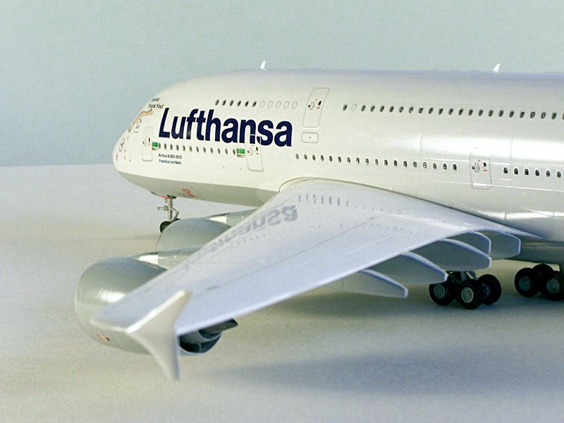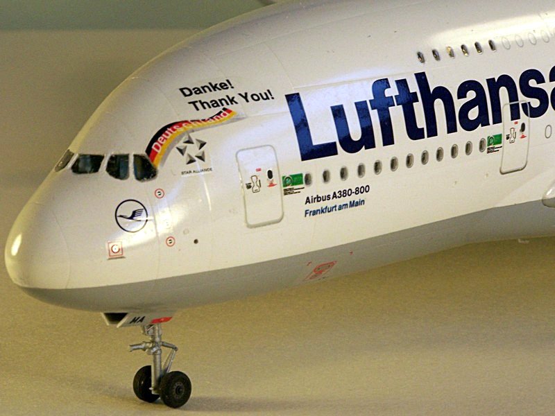 Ein wunderschönes Modell. Schön, dass es den A380 nun in Lufthansa gibt. Vielleicht rafft sich Revell ja noch zu einem Ergänzungsspritzrahmen auf, um die nun bekannte Produktionsvariante leichter baubar zu machen.