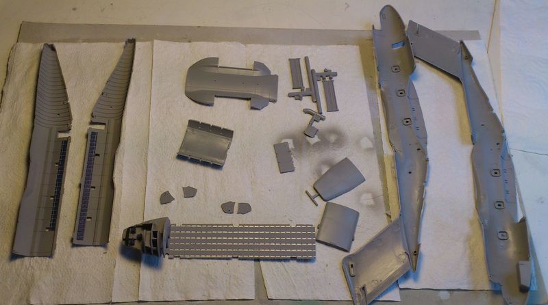Also vorweg: Der Bau hat richtig Spaß gemacht! Die Teile sind sauber gegossen, passen sehr gut zusammen, das Spachteln hielt sich bei mir in Grenzen. Die feinen Gravuren sind einfach klasse. Auch meine Angsttätigkeit, das Herauslösen der Propeller, ging wirklich leicht, ohne Bruch. Hier kann man sich für Bodenstellung oder Influgstellung der Propeller entscheiden. Super. Bei der späteren Montage muss man auf die Blattstellung bei den einzelnen Motoren achten. Die Bauanleitung zeigt das sehr gut. Wenn man sich für eine Variante mit offenem Laderaum entscheidet, muss man die Bastelanleitung gut lesen, sonst verpasst man wichtige Montageschritte!