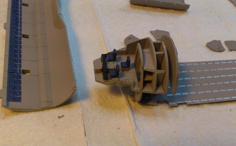 Die Passzapfen für die Laderampe passen gut in geschlossener Stellung. Für die offene Stellung musste ich sie abschneiden, da das Plastik den Winkel der heruntergelassenen Rampe nicht zulässt. Merkwürdig. Also weg damit!